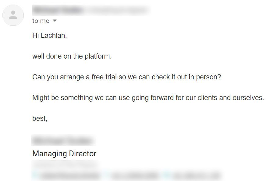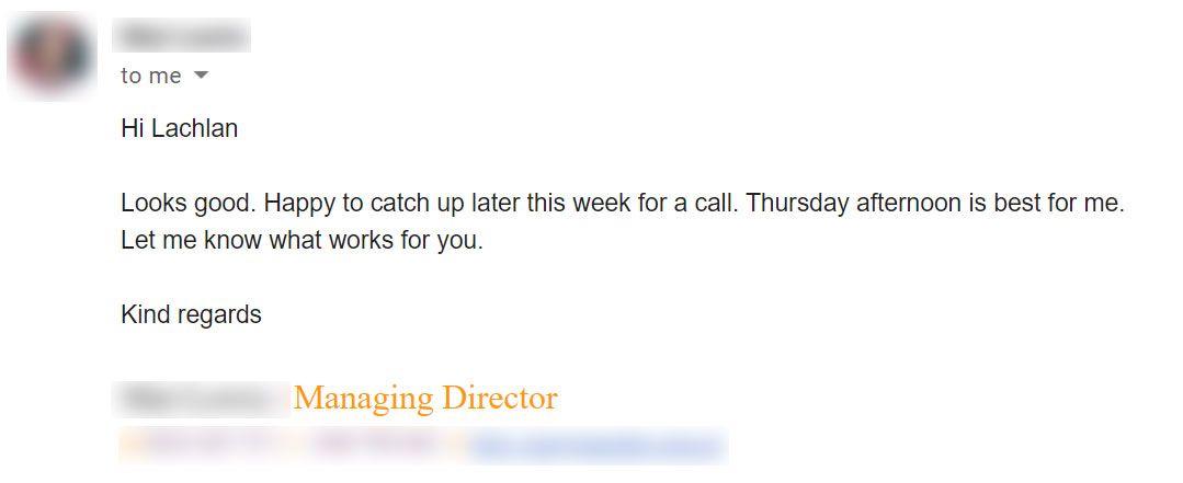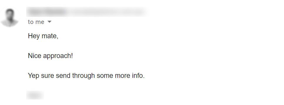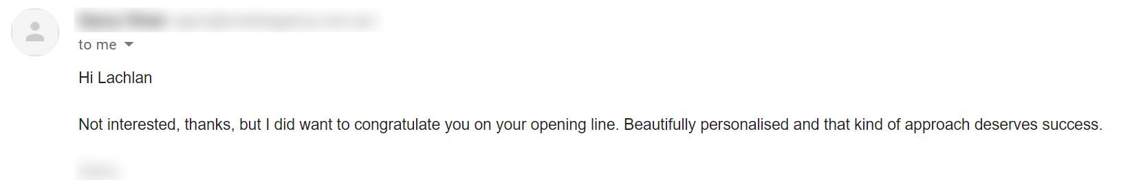 Also worth noting, we found that adding "Please let me know either way" after our call to action marginally improved our reply rate, particularly from those not interested.