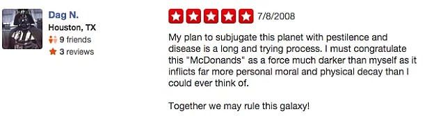 It's a 5-star review and it's got major Star Wars vibes - although the subtext is about the nutritional value of the food, it still manages to paint the business in a good light.