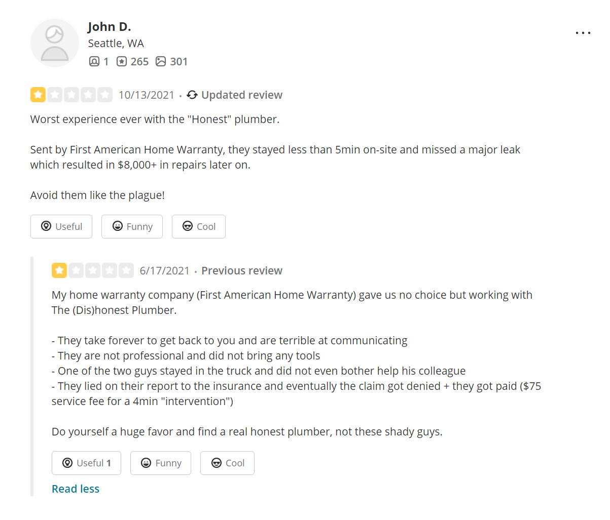 2) The 'Honest Plumber' might want to consider a name change