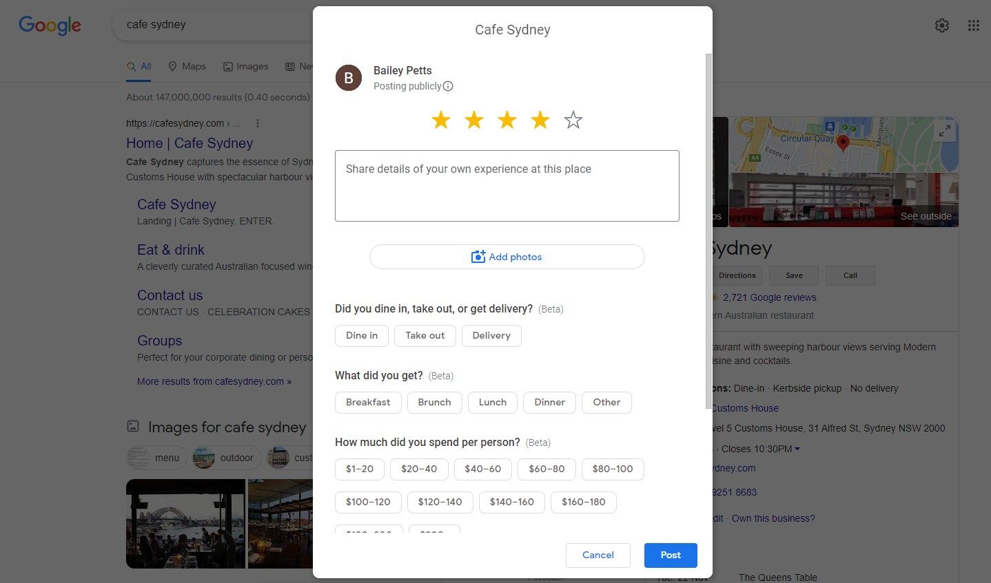 It's as straightforward to leave Google reviews on the Google Maps app as well as through the browser.