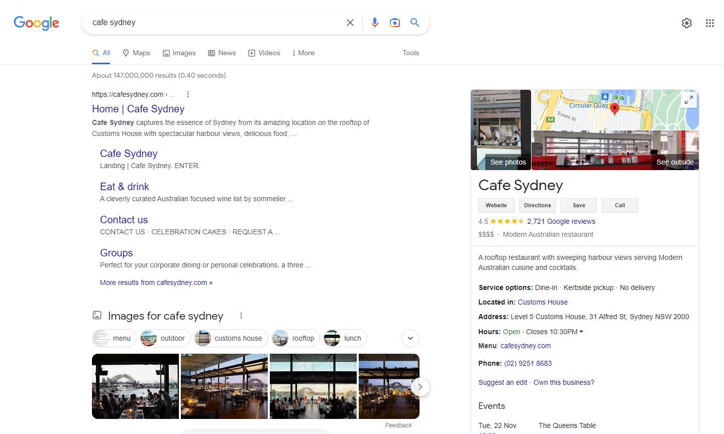 3. It will appear on the search results on the right-hand side and you'll see the reviews section