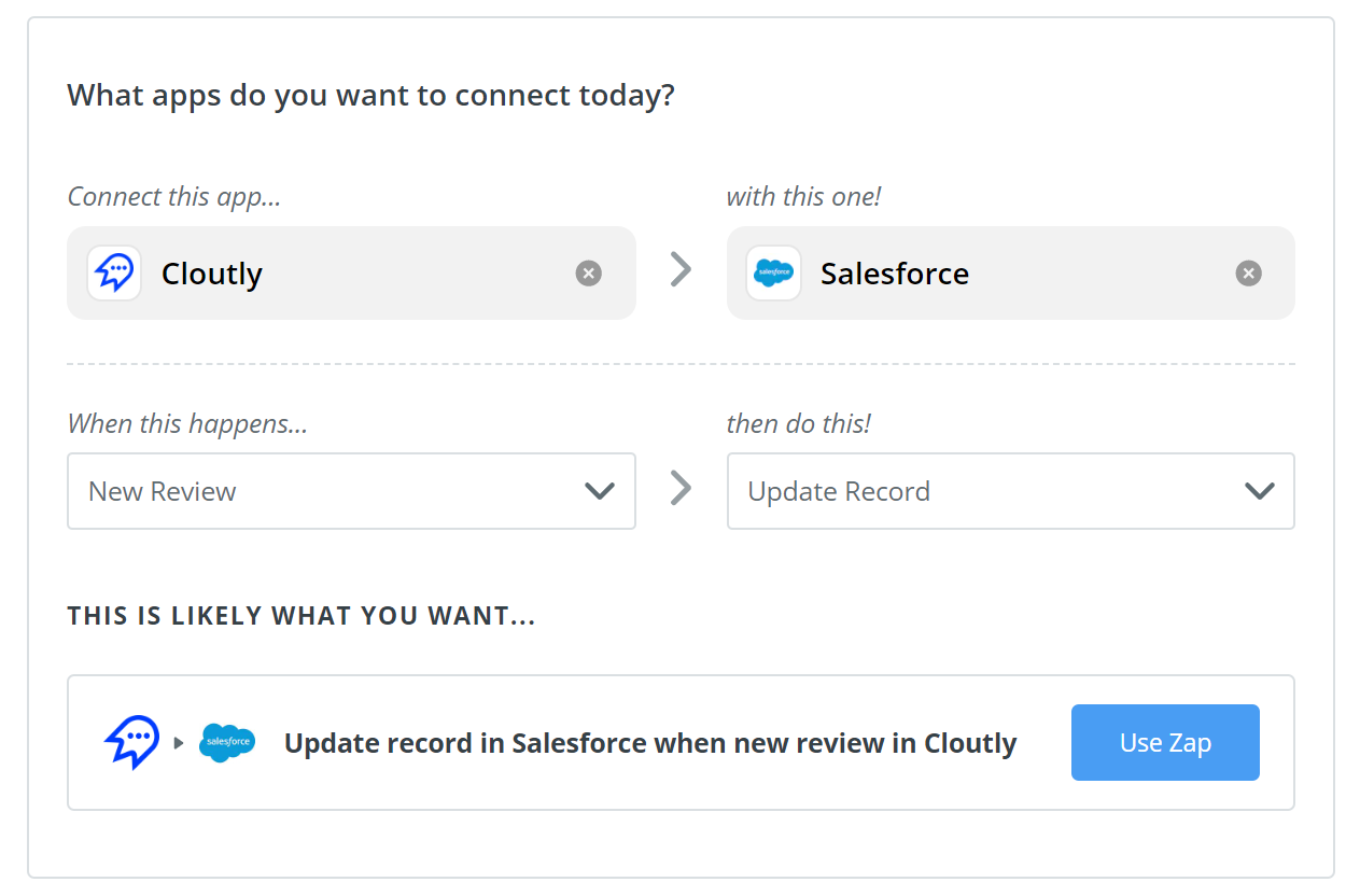 As you can see, there are thousands of possible opportunities to collect and manage your reviews with Cloutly and Zapier. No matter what CRM or system you'd like to configure, it's likely possible with Zapier.