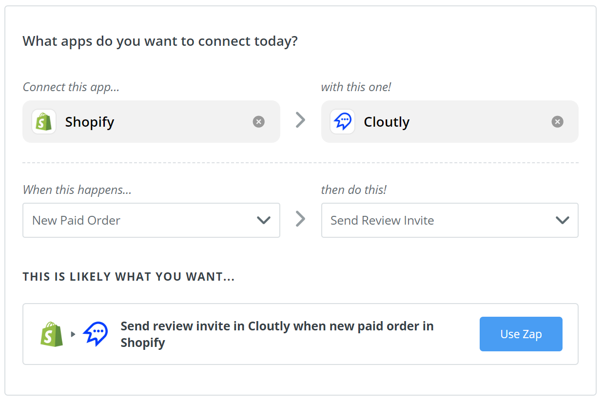 Now for the fun stuff: getting more reviews, at scale! In this case, we tell Zapier to trigger a new review invite when 'something' happens. Let's look at some examples.