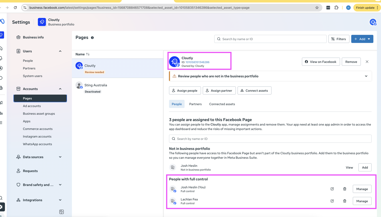 2 - Ensure your user account is added to each Page.