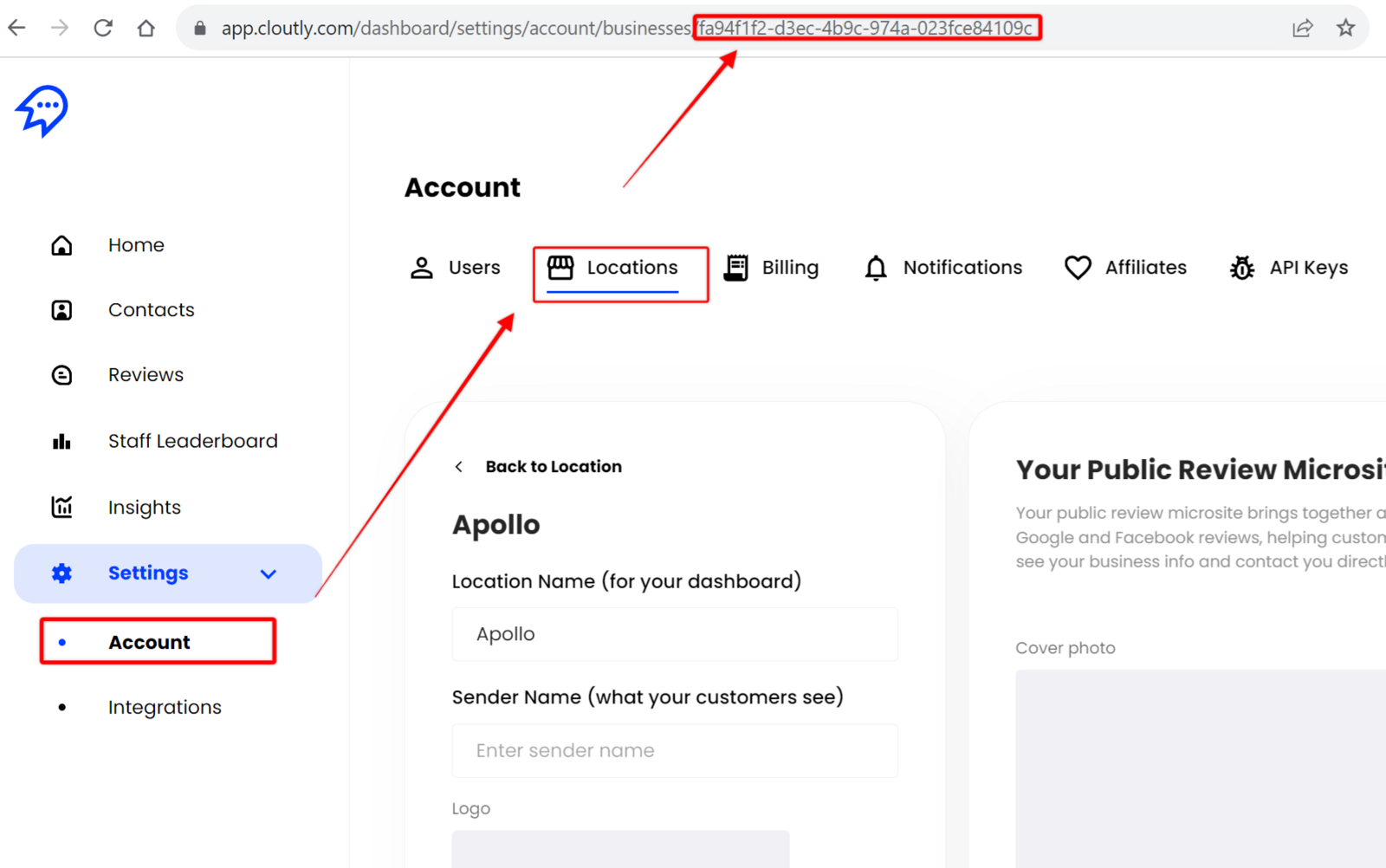 channel- You can provide email and/or phoneNumber. We recommend providing both properties inchannel. However, you need to provide at least one.businessId- Obtain this ID from the GET /businesses query or from the URL on the location page.campaignId- Obtain this ID from the URL on the campaigns page. (omit to use businessId default campaign)sourceContactId- Optional sourceId you can provide to the API.source- Optional source parameter to provide to the API. Mostly used for decoration and tracking if you are inviting from multiples sources.