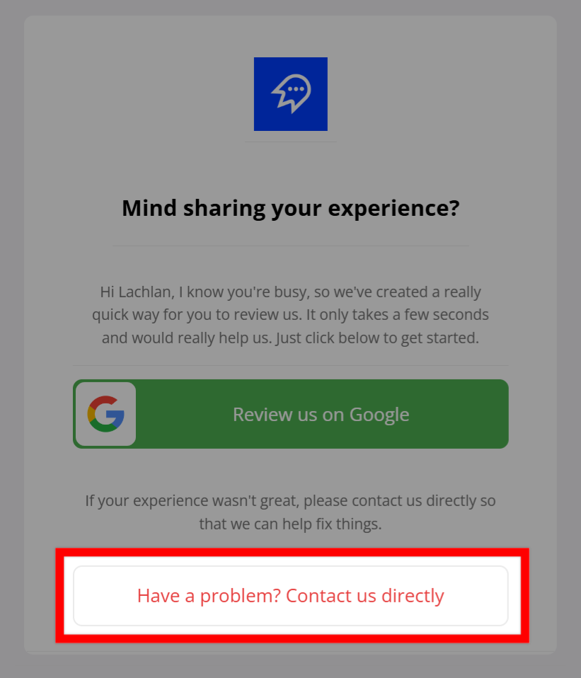 The “Contact us directly” option is simply an additional pathway for those who prefer to speak privately first. It does not hide or block the review request.
