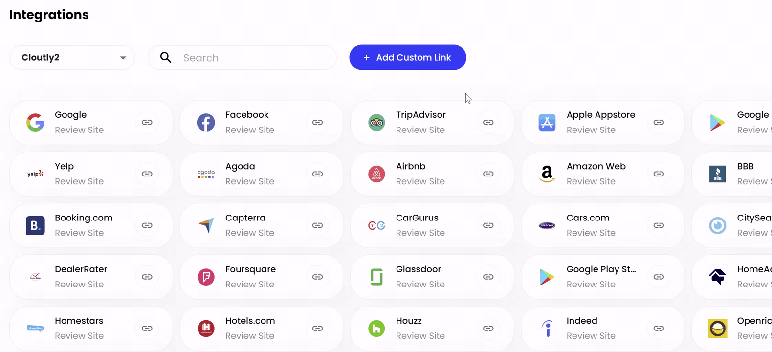For every location you've added to Cloutly, ensure you've connected its corresponding integrations.