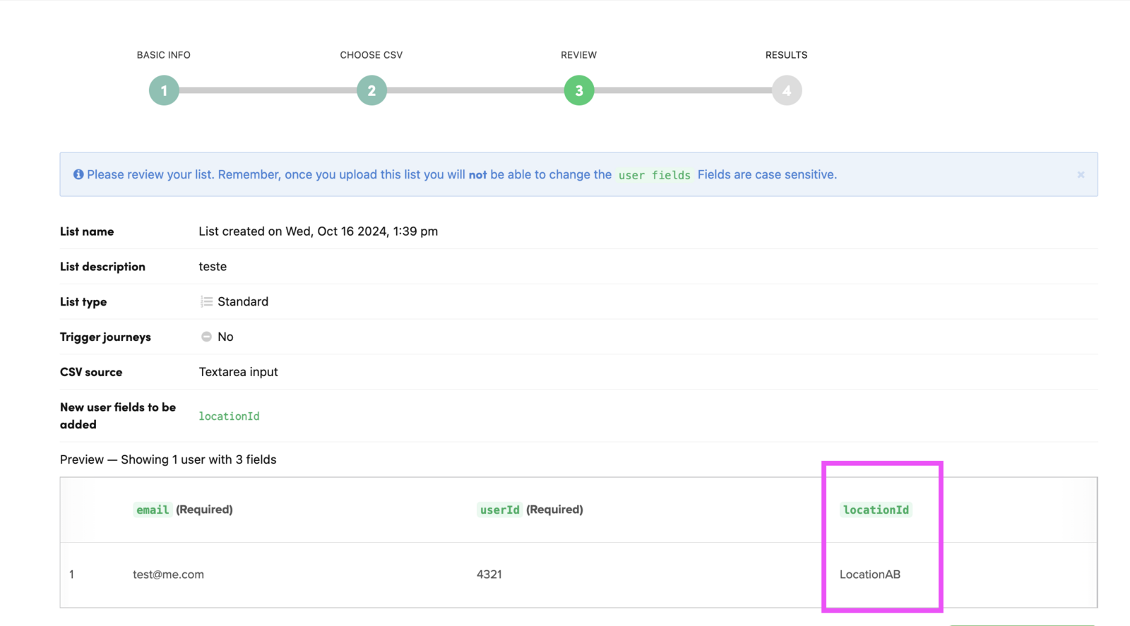 Important! Please ensure you map email, phoneNumber, firstName and locationIdentifier as the minimum required fields