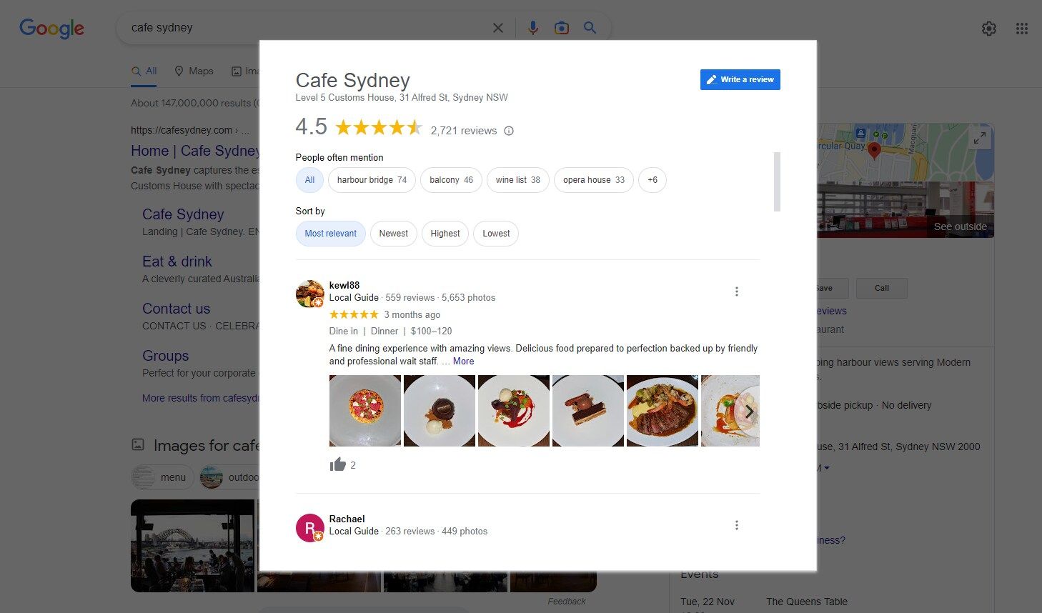 3. It will appear on the search results on the right-hand side and you'll see the reviews section