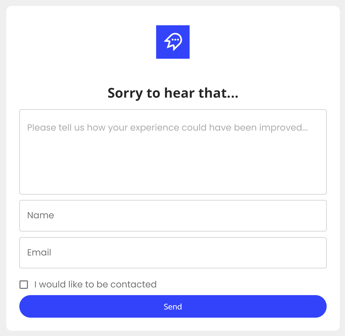 When clicked, this button opens a feedback form and allows the customer to ask you for help or provide you with direct feedback (before their issue results in a bad review).