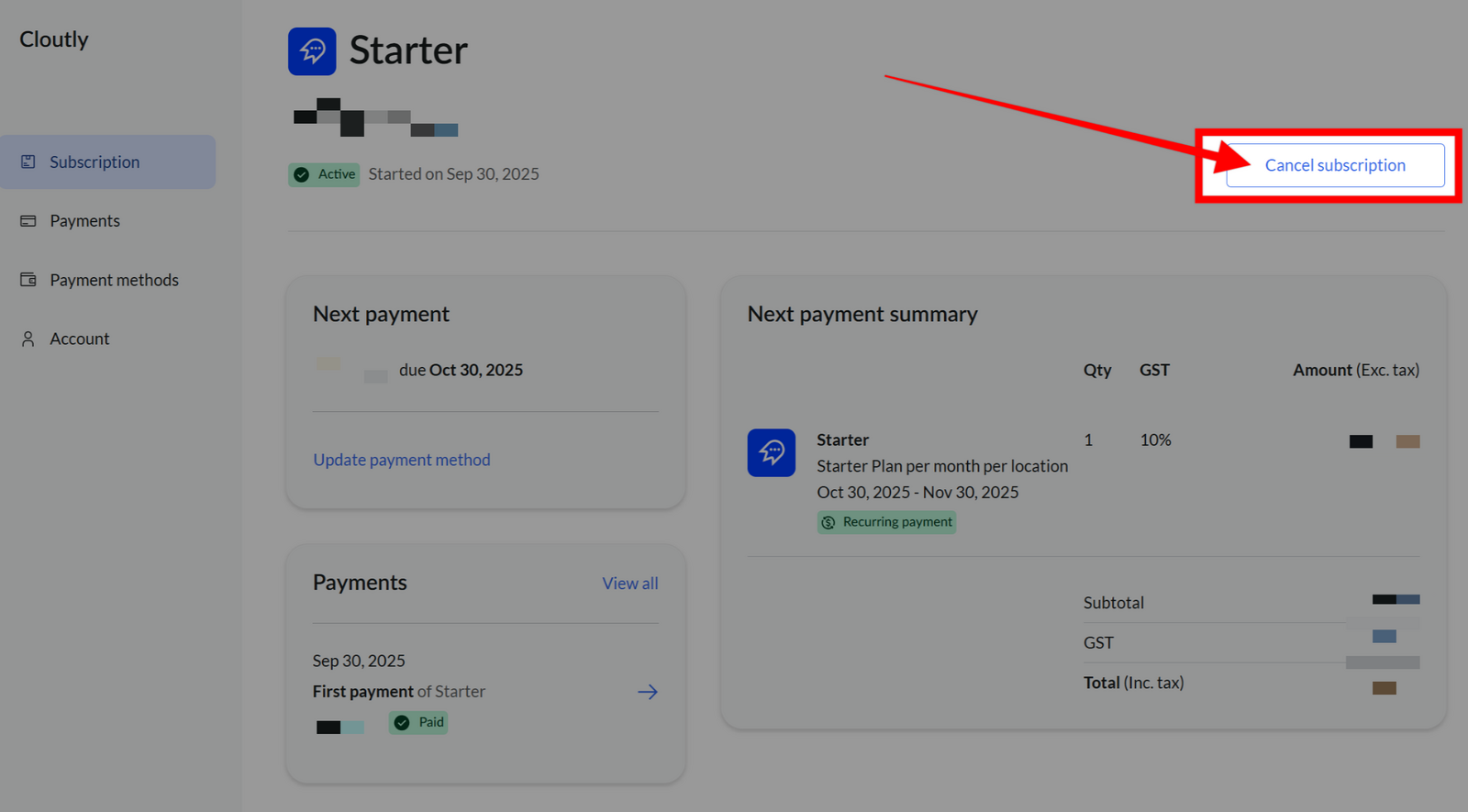 If you’re ready to proceed, you can cancel your subscription at any time directly from your Cloutly account. Here’s how:
