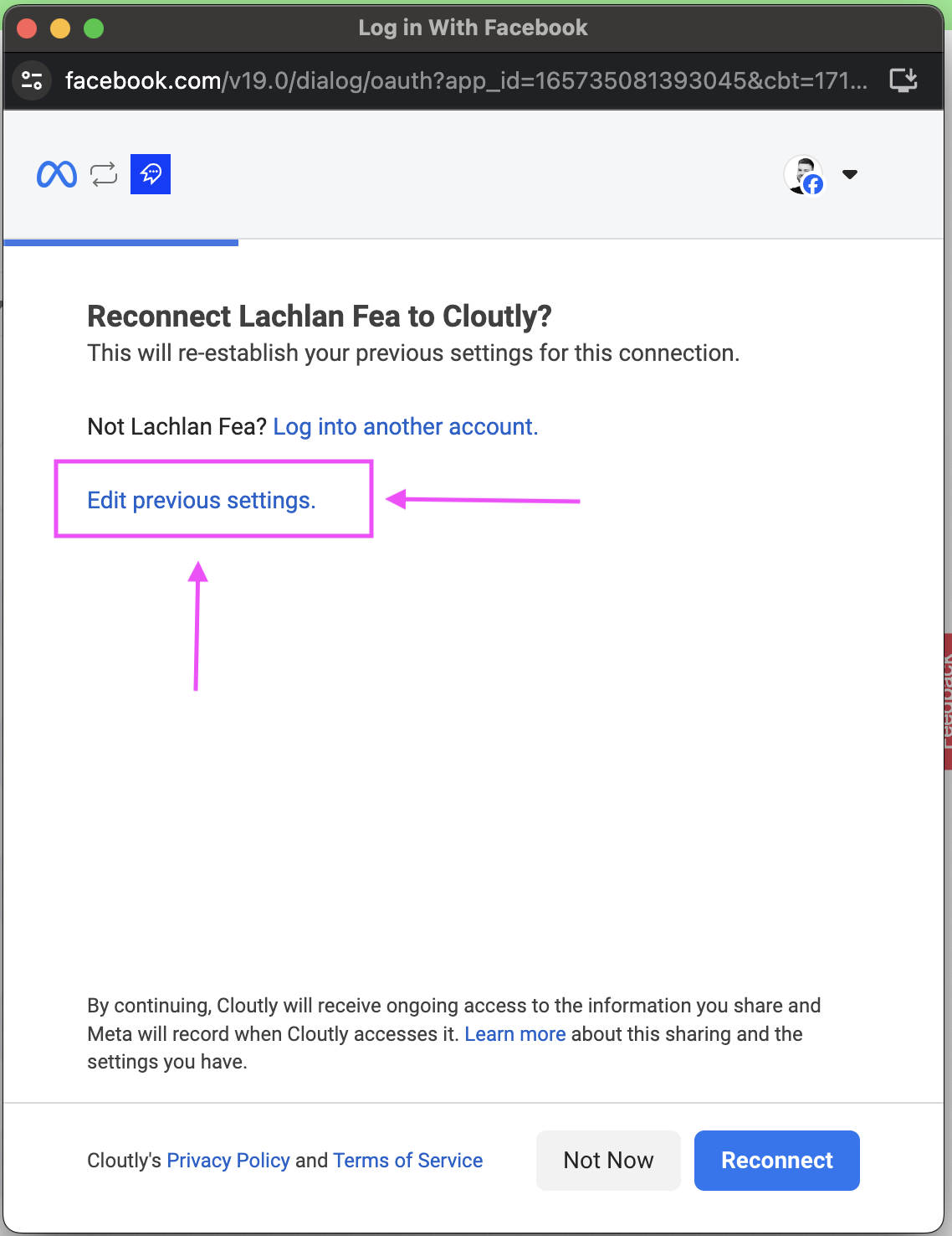 3 - Reconnect FB Settings with Cloutly