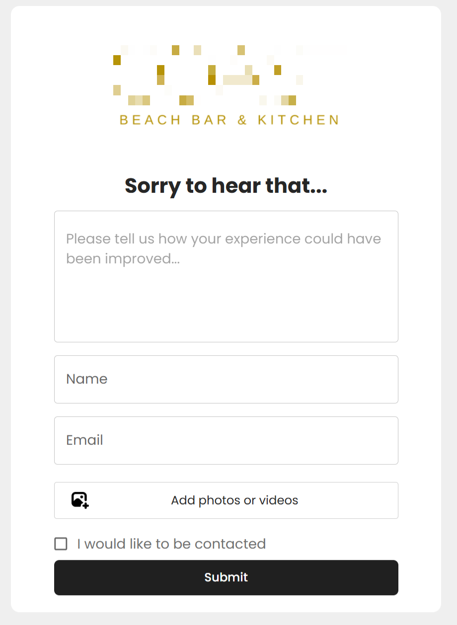 If a customer clicks the “Contact us directly” button, they’ll be taken to a simple, branded feedback form (see screenshot below) where they can share their thoughts privately.
