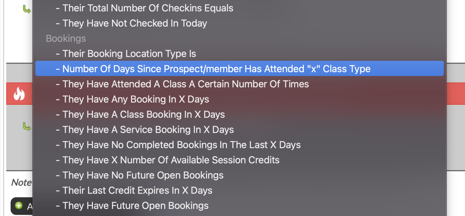 You can choose any rule you'd like. We recommend: "Number of days X since Prospect/member has attend X class".