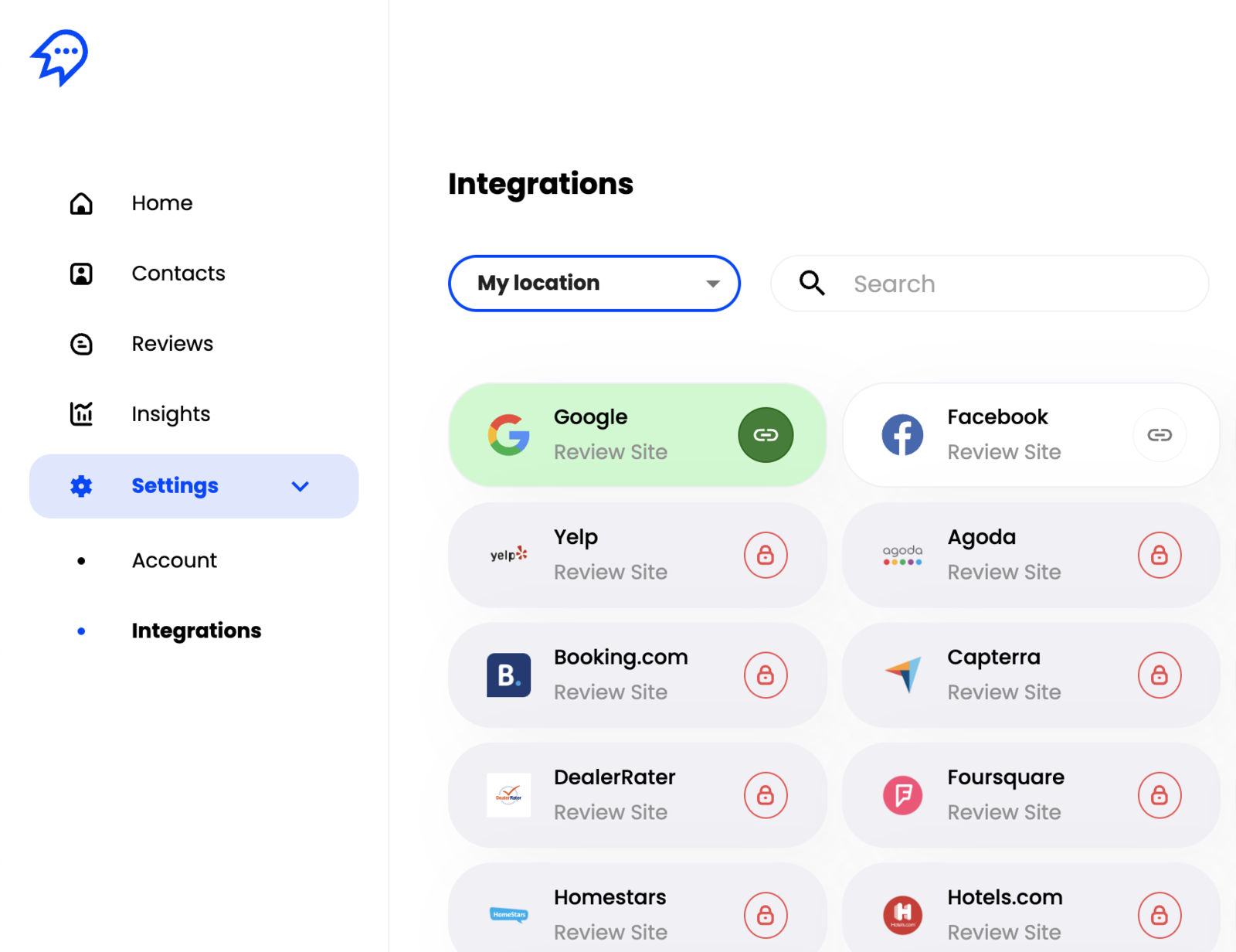 - Connect your review sites in the Cloutly dashboard for the data to show in Looker.
