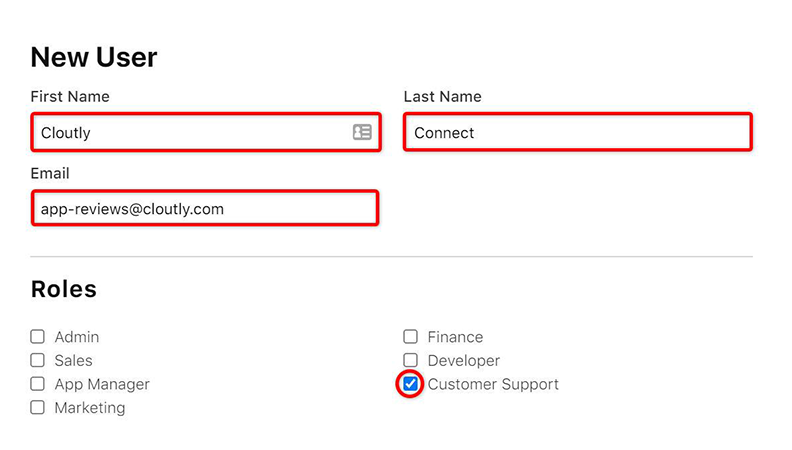 - Check the "Customer Support" box underneath Roles to ensure Cloutly has basic permissions to respond to your reviews