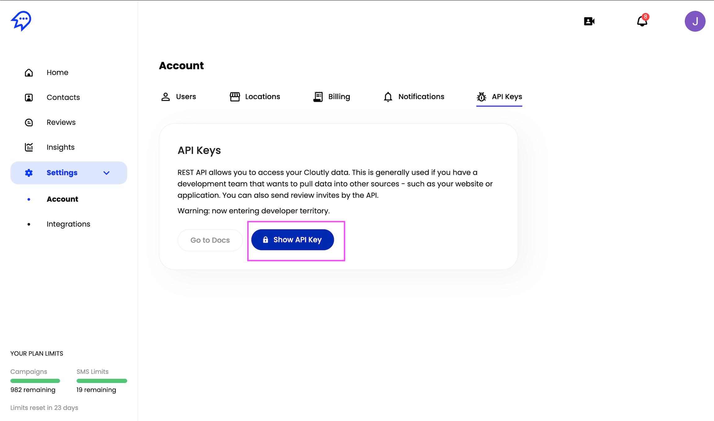 Note: The API Key is used for server-side requests. Do not make this key public.